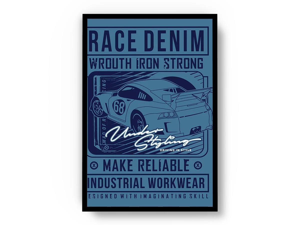 Arte Ilustración Carro Deportivo con Letras en Tono Azul