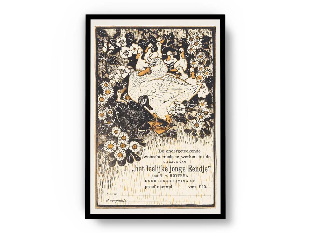 Arte Ilustración Japonesa Patos entre Margaritas