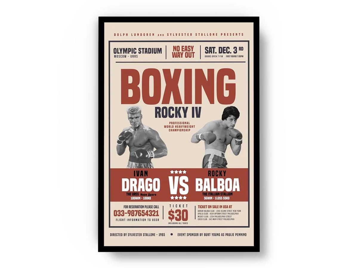 Póster Rocky 4 Evento Boxing Ivan Drago vs Rocky Balboa